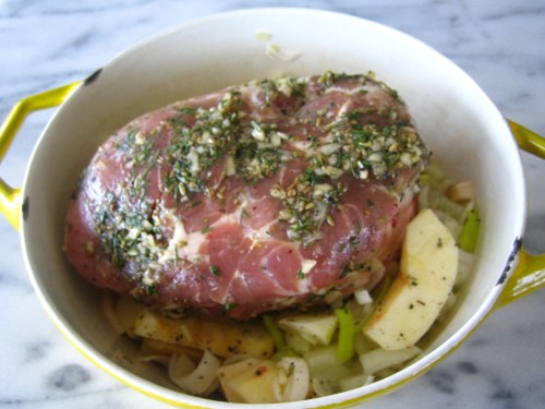Slow-Roasted Pork Shoulder with Apples, Onions & Herbs