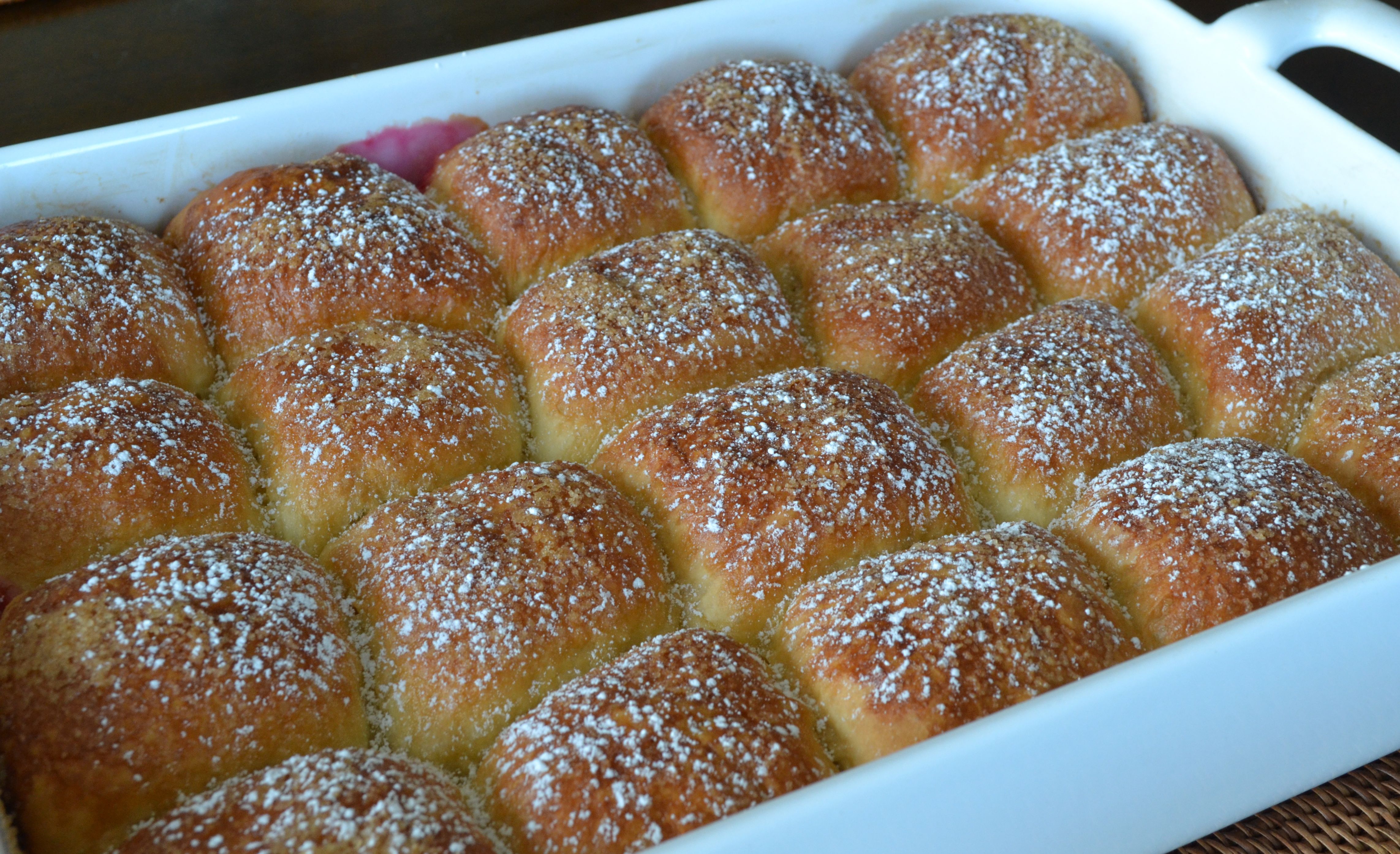 My father remembers that there would often be a plate of buchty waiting for him and his brother on the kitchen table when they came home from school in Prague. They would race in and grab one or two of the little buns which they considered to be the perfect snack: sweet dough wrapped around pitted and sugar-filled fruit.