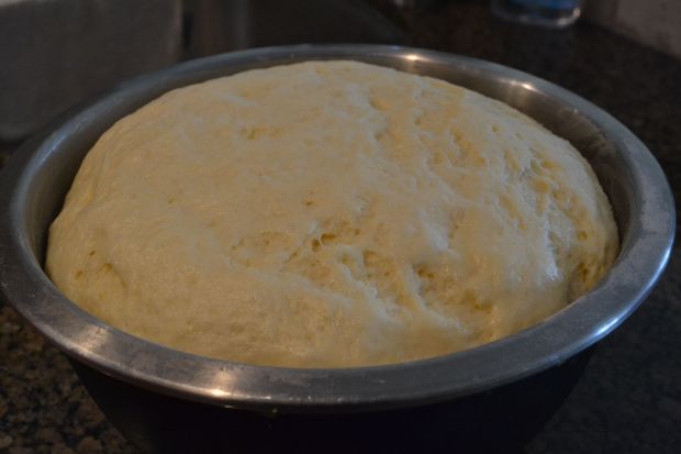 Place dough in a buttered bowl, cover with plastic wrap or a kitchen towel, and let rise for about an hour, or until doubled.