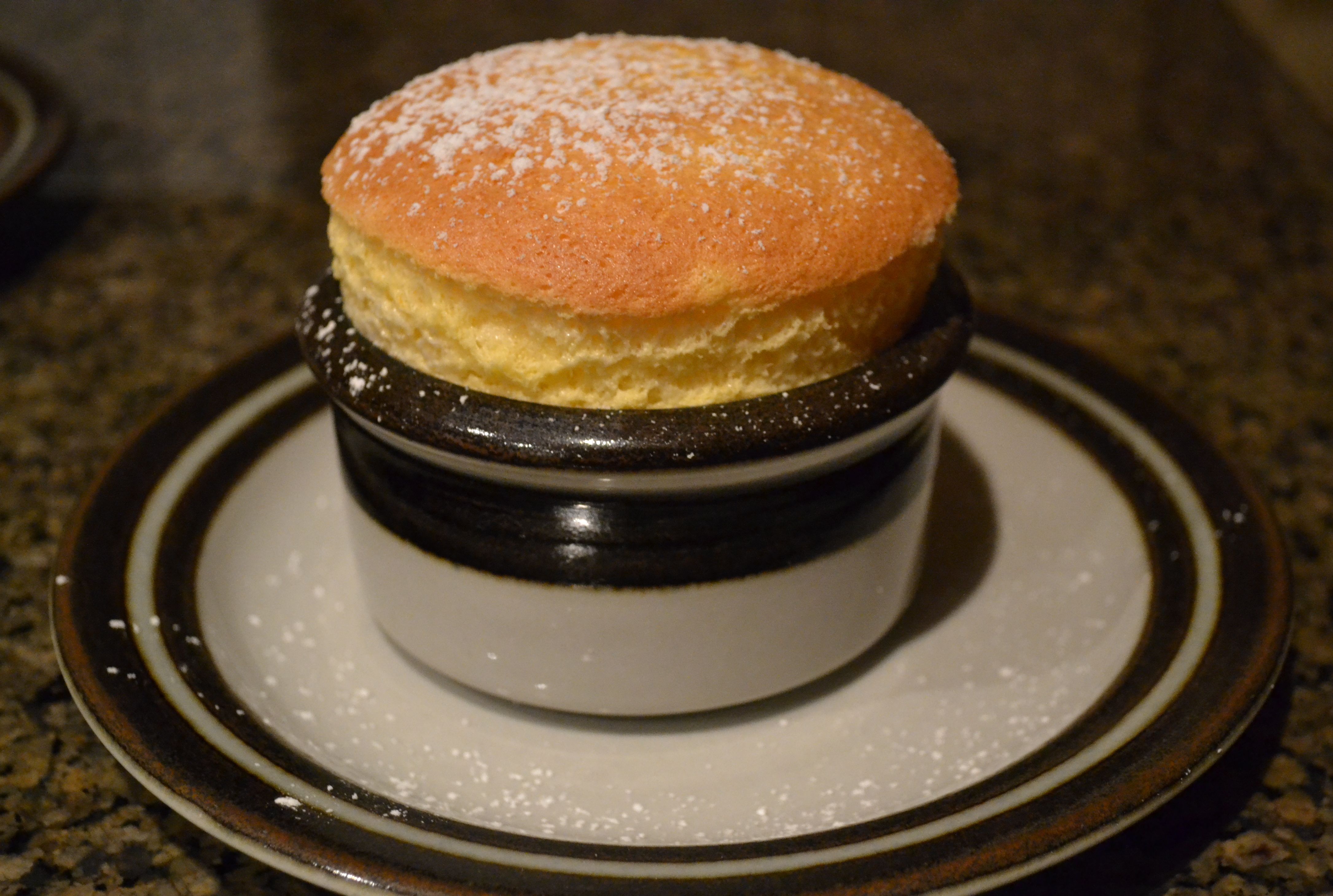 Remove pan from oven and transfer ramekins to dessert plates. Sprinkle with icing sugar and serve immediately. Ask guests to open the top of their souffl