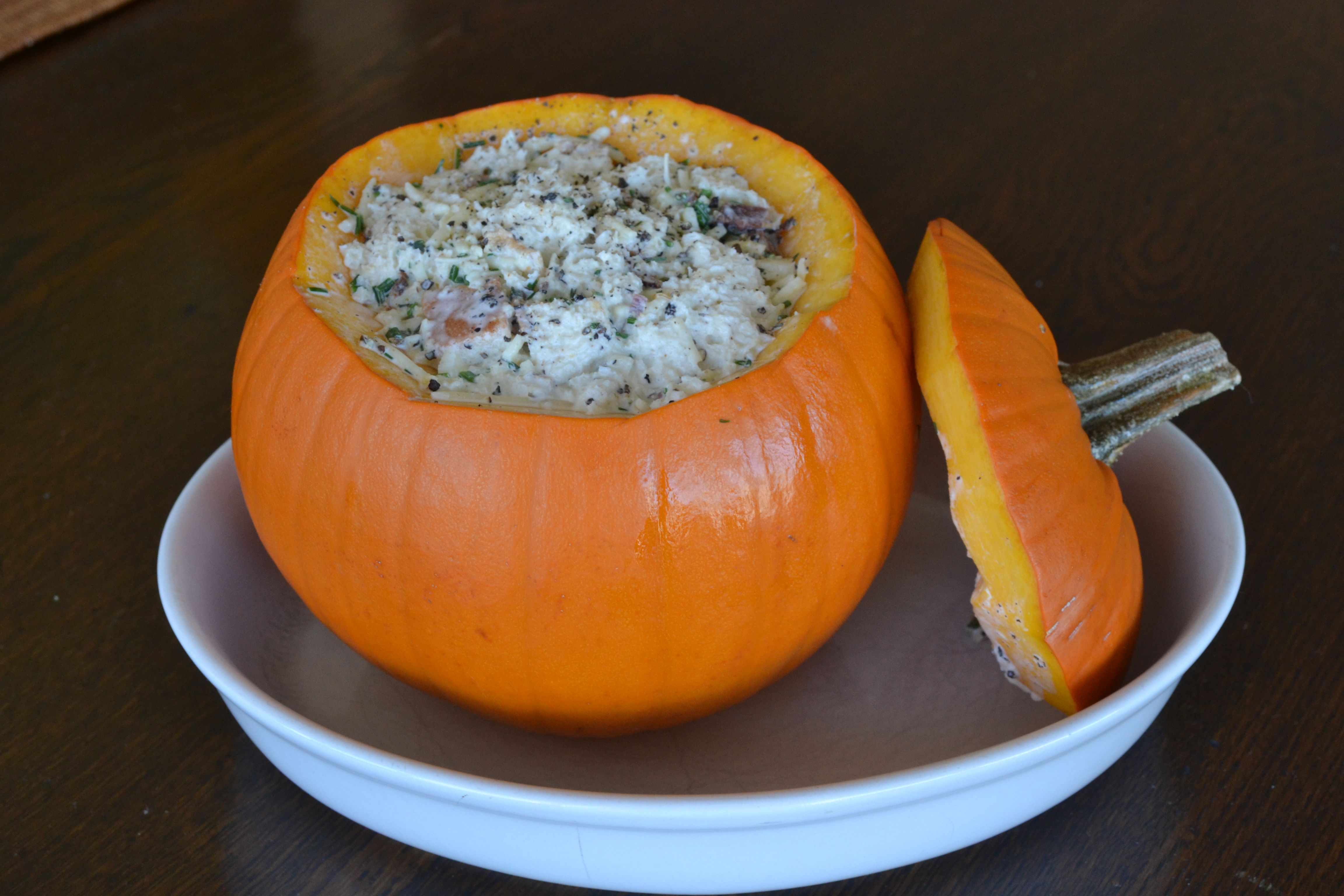 Pumpkin Stuffed with Bread, Cheese, Garlic & Cream